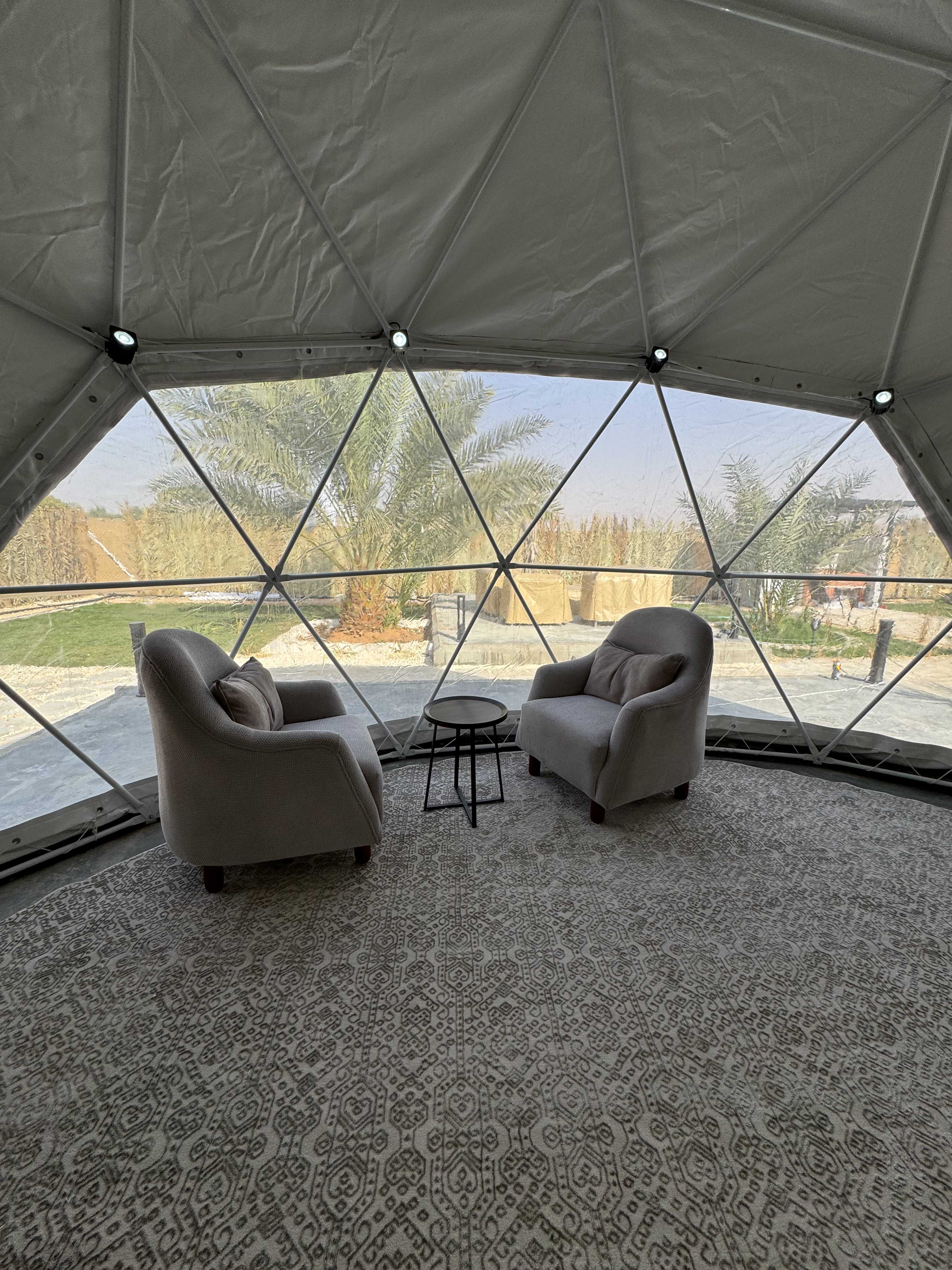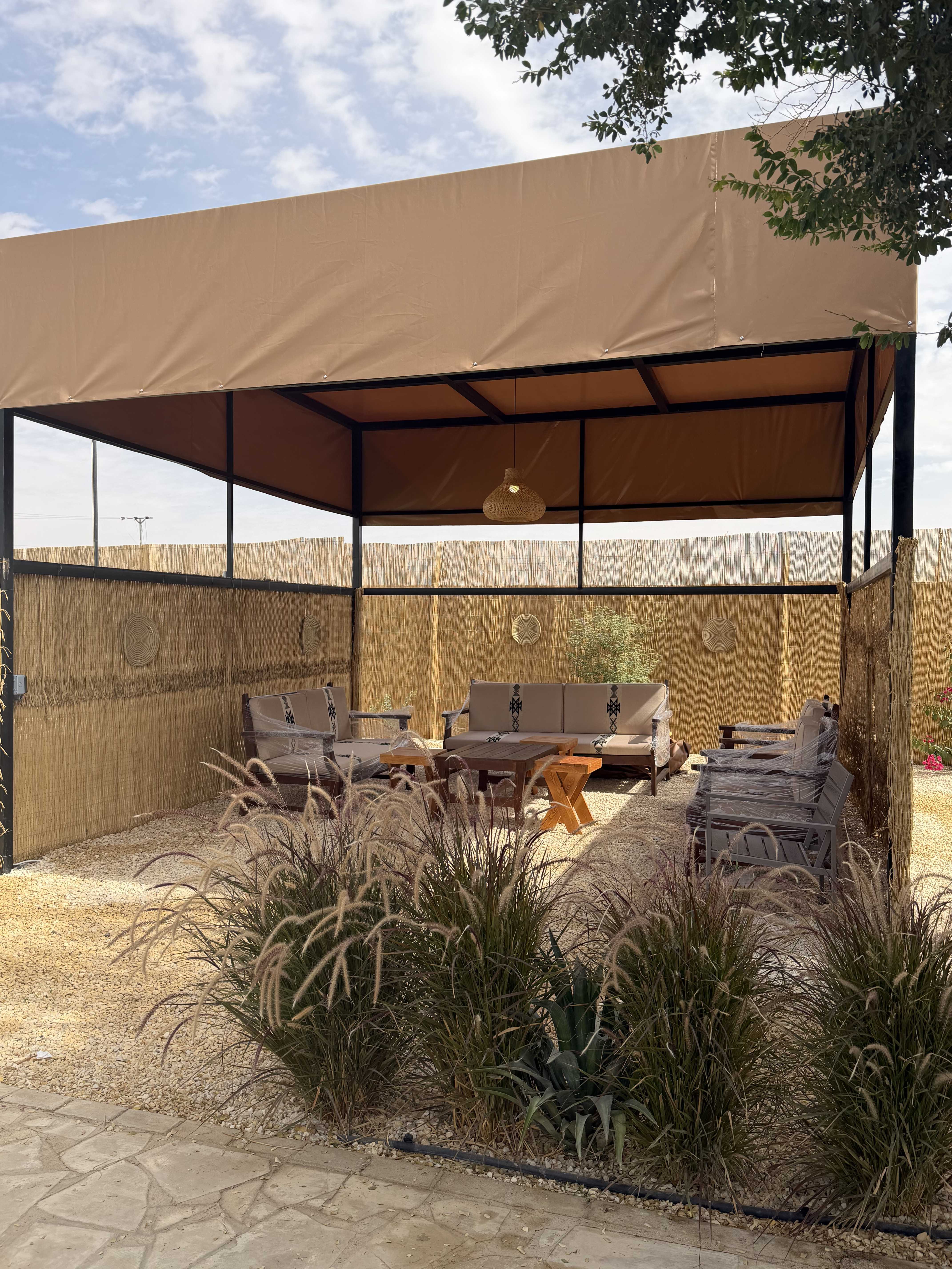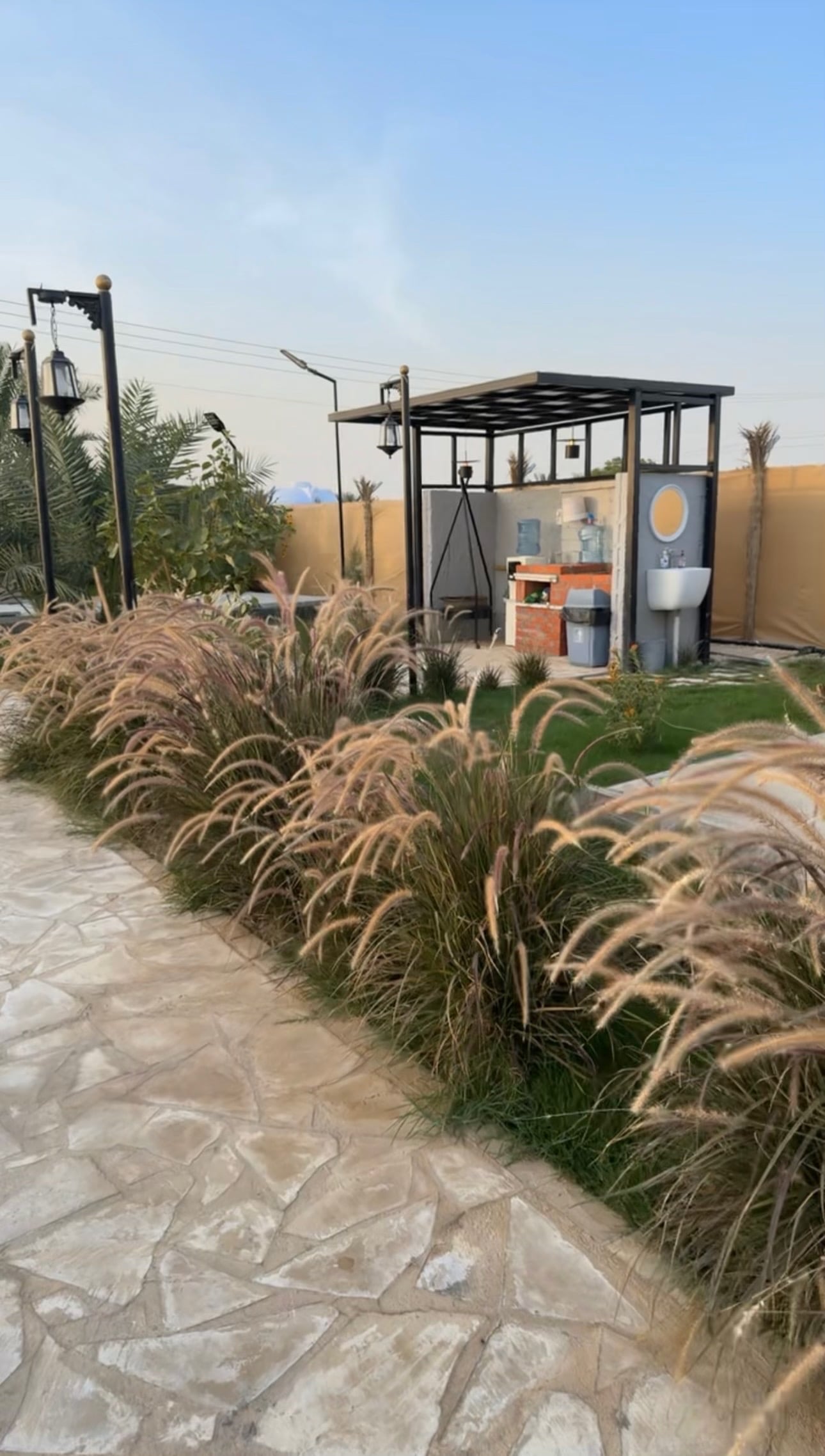 جلسة خارجية مطله على ساحات خضراء تتسع ل ٧ اشخاص