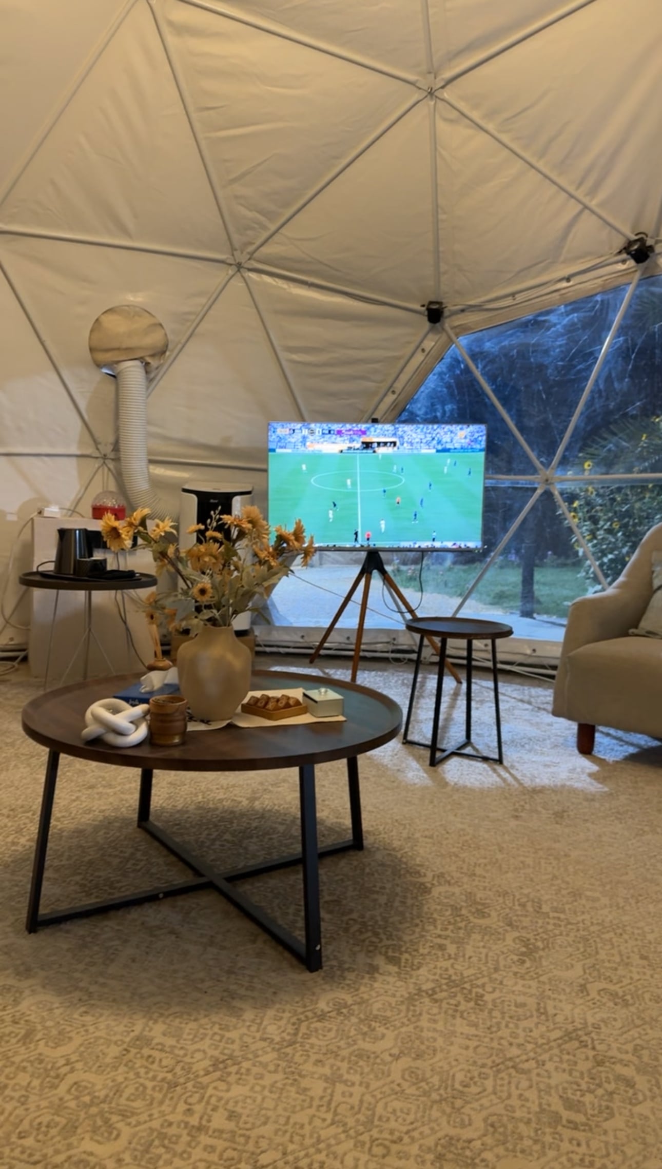 جلسة شتوية مغطاة مهيئه لشبة النار في الشتاء